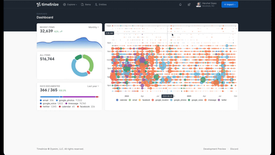 ほとんどのアプリはデータを「クラウド」に保存し、ユーザーが管理することはできません。この場合、GoogleやApple、Facebookのアカウントやスマートフォンにアクセスできなくなったらデータを管理することができなくなってしまいます。Timelinizeは、そのデータをユーザーのコンピューターに持ち込み、タイムラインとして管理できるツールです。
