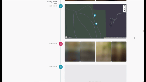 タイムラインビューでは、すべてのデータをグループ化し、単一の線形レイアウトに表示。特定の日に何が起こったかを、発生順に簡単に確認できます。