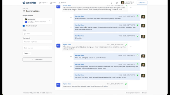写真やテキストメッセージ、メール、日記、SNSの投稿、ワークアウト、連絡先など、個人のデータをすべてタイムライン上に並べて記録するオープンソースツール「Timelinize」が公開されています。対応OSはWindows、macOS、Linuxです。