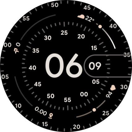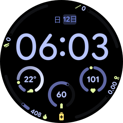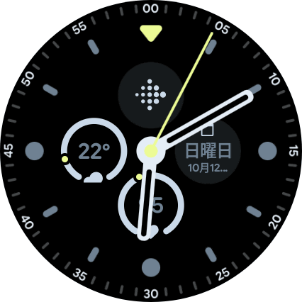 標準で設定されるウォッチフェイスは「モジュラー」で、こんな感じ。