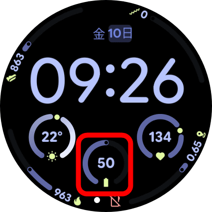 Pixel Watch 4は前世代よりも電力効率が向上しており、公称だとバッテリーの持続時間は常時表示で30時間、バッテリーセーバーオンで48時間。実際に常時表示で使っていたのですが、100%まで充電してから、約17時間使ったところでバッテリー残量はちょうど50%。