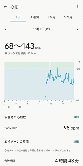 マルチパス心拍数センサーを搭載しているので、Pixel Watch 4は常時心拍数をモニターしてくれます。測定した心拍数はFitbitアプリを通じてチェックできます。