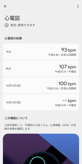 また、Pixel Watch 4ではFitbitを通じて心電図測定(BCG)が可能になりました。心電図の測定は、リューズに人さし指で触れて測定します。