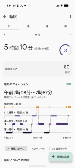 そして、Pixel Watch 4を着けた状態で睡眠測定もしてみました。