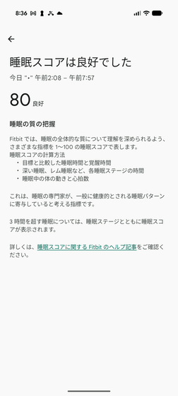Apple Watchの場合は睡眠スコアの部分点を教えてくれました。