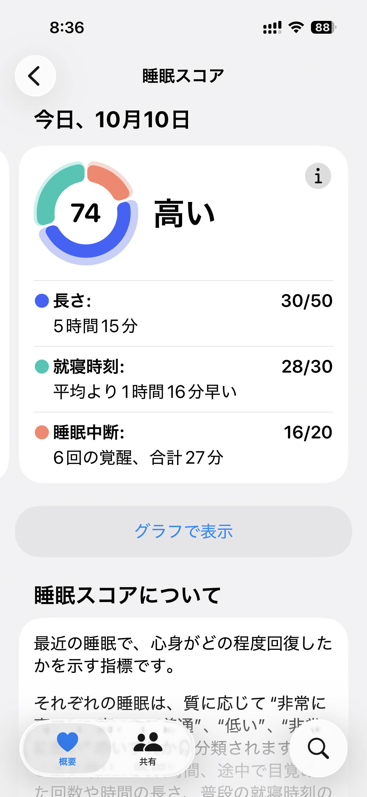 Apple Watchの場合は睡眠スコアの部分点を教えてくれました。