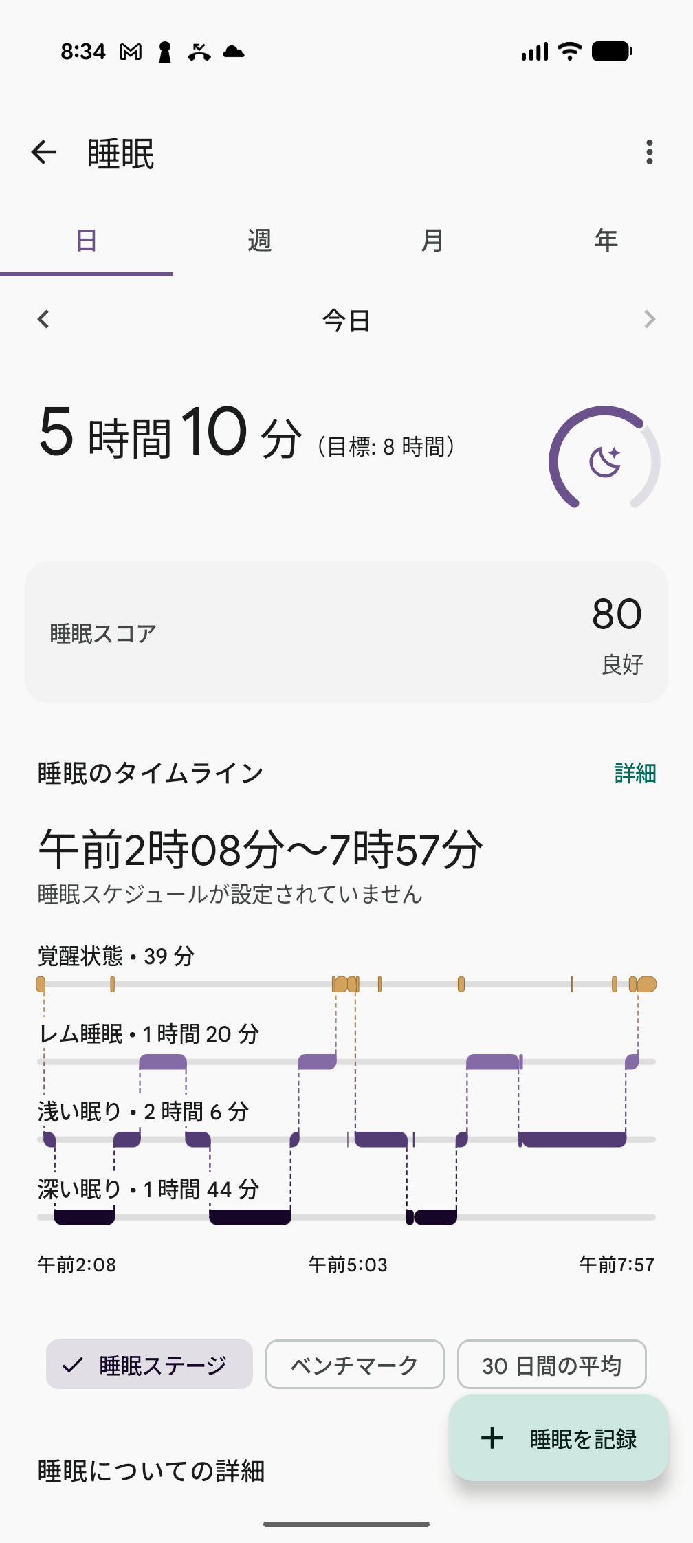 そして、Pixel Watch 4を着けた状態で睡眠測定もしてみました。