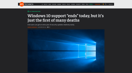 Windows 10のサポートが2025年10月14日をもって終了しました。サポートが終了したからといって、OSが起動しなくなったり、何かの機能が使えなくなったりすることはありませんが、機能更新プログラムとセキュリティ更新プログラムの提供がなくなって安全性の点で問題があるため、MicrosoftはWindows 11への更新を呼びかけています。しかし、Windows 10のサポートが終了する直前時点でも、Windows PC全体の4割はWindows 10だったことがわかっています。