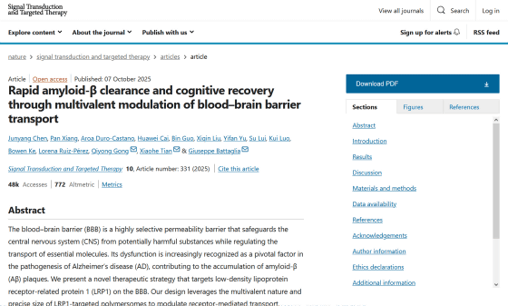 アルツハイマー病は記憶力や認知機能の低下などを引き起こす神経変性疾患で、アミロイドβというタンパク質が凝集したアミロイドβプラークが、脳に蓄積してしまうという特徴があります。新たに、スペインのカタルーニャ生物工学研究所(IBEC)や中国の四川大学華西病院などの研究チームが、マウスの脳からたった数時間でアミロイドβプラークを大幅に除去する治療法を開発しました。