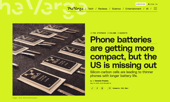 近年は一部のフラッグシップスマートフォンにおいて、「シリコンカーボンバッテリー」が採用されるケースが増えています。従来のリチウムイオンバッテリーとの違いは何なのか、シリコンカーボンバッテリーにはどういった利点があるのかといった疑問について、海外メディアのThe Vergeが解説しています。
