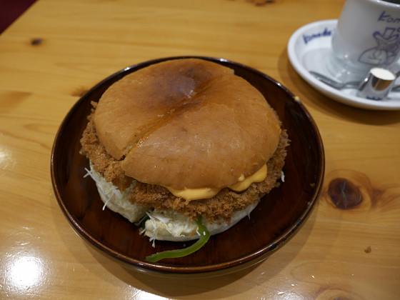 重みが限界突破しているとのことでしたが、パンがフカフカで見た目よりは軽めな印象です。メンチカツの衣はサクサク。中の肉はかなり細かくひかれているタイプで、「粗びきの粒状感」は皆無の柔らかい食感に仕上がっています。衣のサクサクをのぞくと全体的に柔らかい食感のバーガーなので、見た目に反してスルスルと食べ進められました。ソースがメインの味付けなのですが、少し単調すぎる感があるので、からしや黒コショウなどのアクセントが欲しくなります。