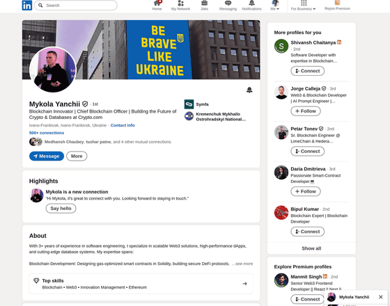 ドッダ氏はフリーランスのウェブ開発者として8年間働いており、さまざまなプロジェクトへの参加経験があります。そんなドッダ氏はある日、「Symfa」という会社の最高ブロックチェーン責任者を名乗るミコラ・ヤンチー氏からLinkedInのメッセージを受け取りました。メッセージには「不動産ワークフローの変革を目指すプラットフォーム『BestCity』を開発中です。パートタイムの募集もございます。柔軟な体制です」と仕事の紹介が書かれていました。
