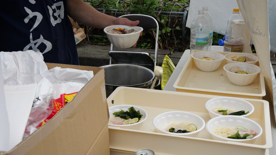 開会直後から長蛇の列で賑わっており、その場でそうめんに出汁(だし)をかけて振る舞われていました。