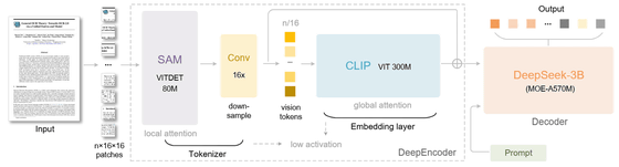 「DeepSeek-OCR」は、名前の通りOCR向けに調整された6.6GBのAIモデルで、元の情報の97%を保持しつつテキスト量を10分の1にまで圧縮することができるとのこと。システム内には、画像処理を担当する3億8000万パラメータのDeepEncoderと、5億7000万のアクティブパラメータを持つDeepSeek3B-MoE上に構築されたテキストジェネレーターの2つのコアを備えています。