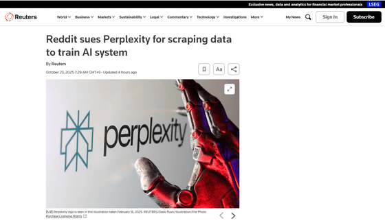 Googleの検索結果に表示されたコンテンツをAIトレーニングのため違法に盗んだとしてRedditがPerplexityなど4社を提訴