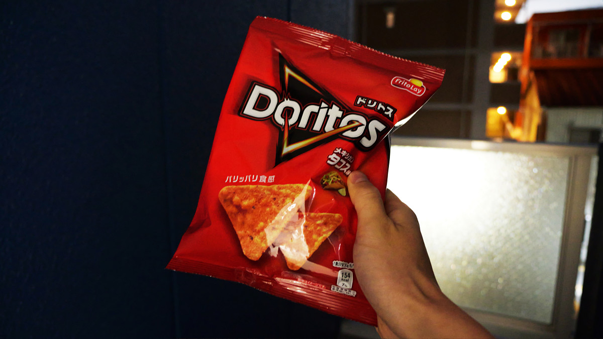 アレンさんはこんな感じにドリトスの袋を持っていただけとのこと。