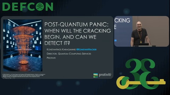 2025年8月にアメリカのラスベガスで開催された世界最大級のセキュリティイベント・DEF CON 33で、量子コンピューティングおよびサイバーセキュリティの第一人者として知られるコンスタンティノス・カラギアニス氏が、「ポスト量子パニック:暗号解読はいつ始まるのか、検知は可能か?」というプレゼンテーションを実施しました。