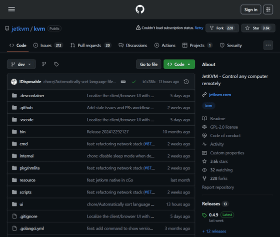 JetKVMはオープンソースであるため、ソースコードはGitHub上で公開されています。