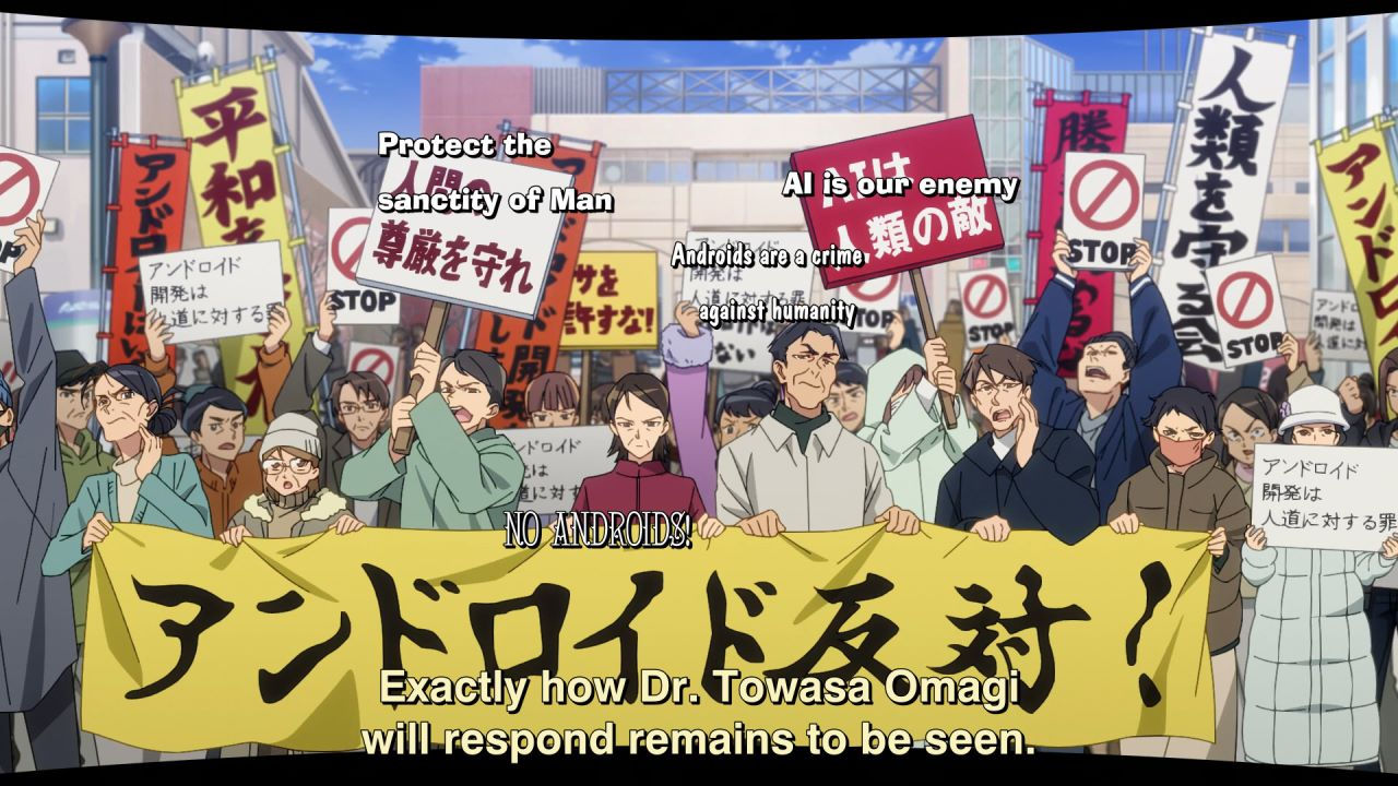これに対して、字幕の品質低下が指摘される前の字幕が以下。画面上のテキストの字幕はテキストの直下に、キャラクターのセリフの字幕は画面下部に表示されており、視聴性および可読性が2025年秋アニメの字幕よりも高いことは明らかです。