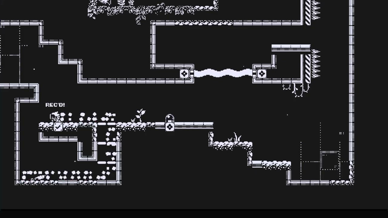 もう一度右側に移動してL字型の動きを再生することで、トゲを回避して進むことができました。このように、記録できるのは直線的な動きだけではないため、複雑な地形でも進んでいくことができます。