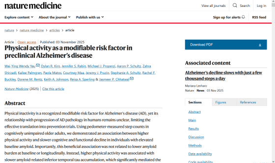 記憶力や認知機能の低下を特徴とするアルツハイマー病は、世界中の高齢者やその家族に影響を与える重大な神経変性疾患です。そんなアルツハイマー病の進行を「1日5000歩」歩くだけで遅らせることが可能かもしれないとの研究結果を、アメリカの医療研究機関であるマス・ジェネラル・ブリガムが率いる研究チームが発表しました。