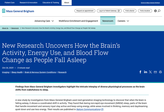 マサチューセッツ州に拠点を置く医療研究機関マス・ジェネラル・ブリガムが次世代イメージング技術を用いて、人が眠りに落ちていくときに脳の活動がどのように変化していくか、そしてエネルギーの使用量や血流がどのように変化するかを明らかにしました。