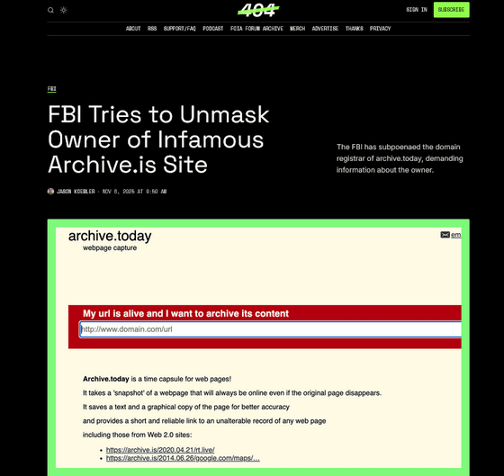 FBIがウェブ魚拓サービス「archive.today」の所有者の身元を捜索中
