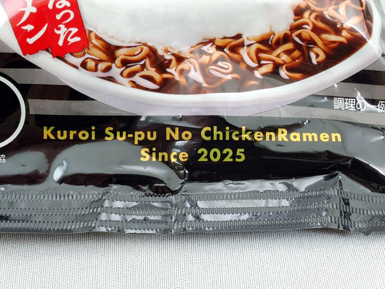 袋の下の方には「Kuroi Su-pu No ChickenRamen Since 2025」と、英語表記というわけでもないメッセージが。
