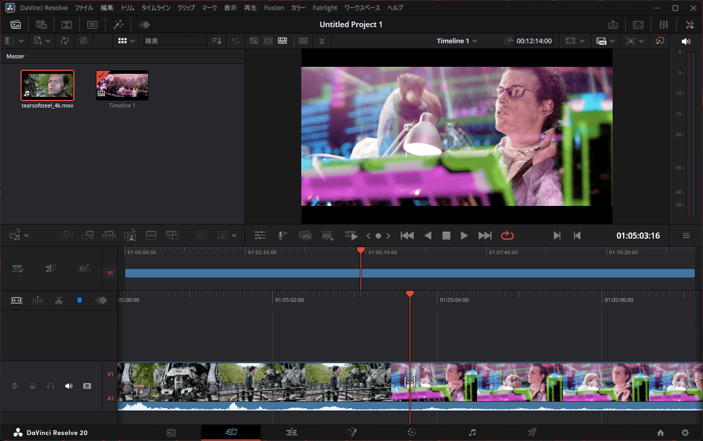 ベンチマークテストだけでなく実際のタスクでの性能を検証するべく、4K動画のエンコードにかかる時間を測定してみました。元データとしてBlenderが無料公開しているショートムービー「Tears of Steel」の4K動画ファイルを使用。ファイルサイズは6.27GB、動画の長さは12分14秒、フレームレートは24fpsです。元データを動画編集アプリ「DaVinci Resolve」で読み込んだところ、少しだけシーク操作がギクシャクするもののカット編集などは問題なくこなせました。