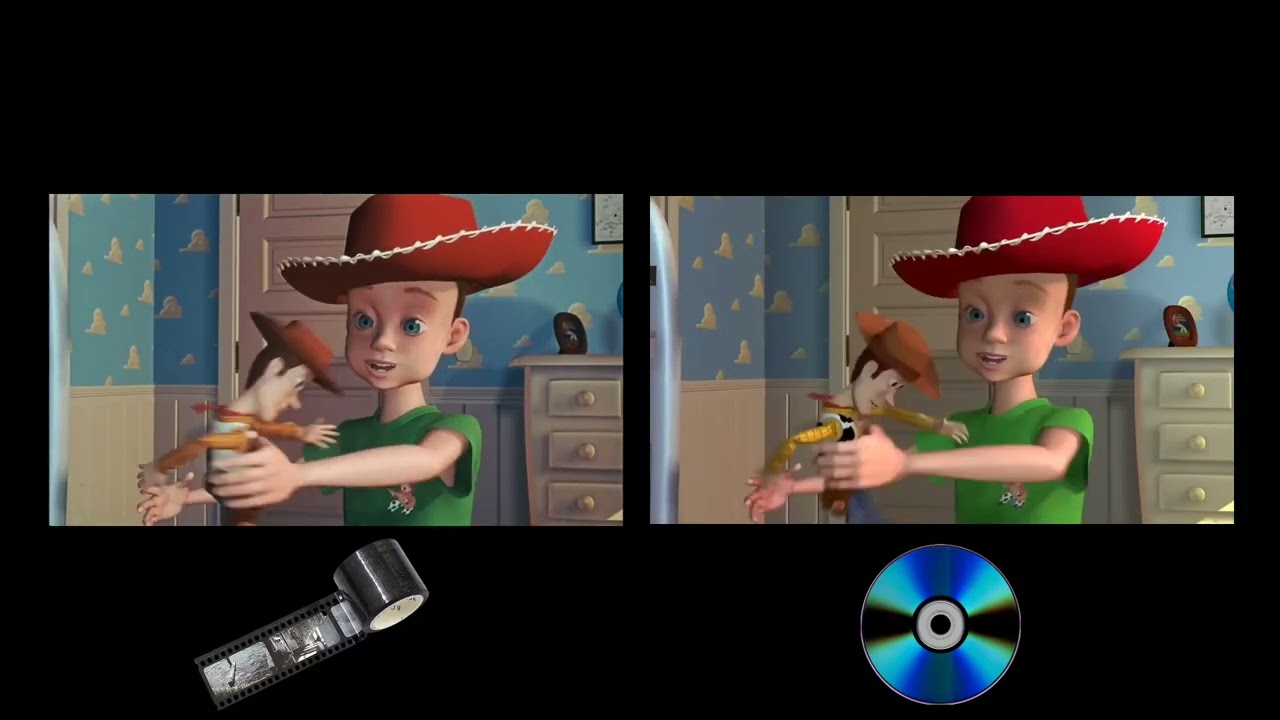 Toy Story: Original 35mm Theatrical Print vs. DVD Digital Transfer Re-release - YouTube