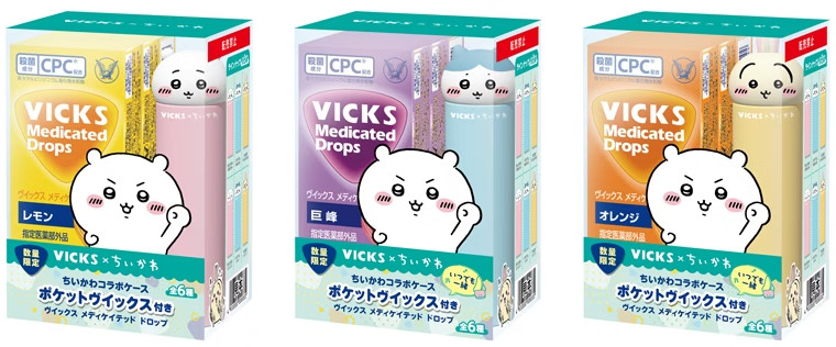 口腔内の殺菌・消毒ができるドロップ「ヴイックス メディケイテッド ドロップ」と「ちいかわ」のコラボ企画が2025年12月4日(木)からスタートします。数量限定で、「ヴイックス メディケイテッド ドロップ」(20個入り×3セット)にちいかわコラボケース「ポケットヴイックス」が付いたオリジナル企画品が発売されるほか、Xのフォロー&リポストで「ポケットヴイックス」6種コンプリートセットが100名に当たります。