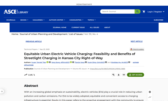 Equitable Urban Electric Vehicle Charging: Feasibility and Benefits of Streetlight Charging in Kansas City Right-of-Way | Journal of Urban Planning and Development | Vol 151, No 4