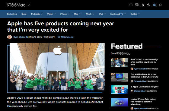 Appleが2026年に発売するとウワサされている新製品の中で、特に楽しみなものをApple関連メディアの9to5Macがまとめています。