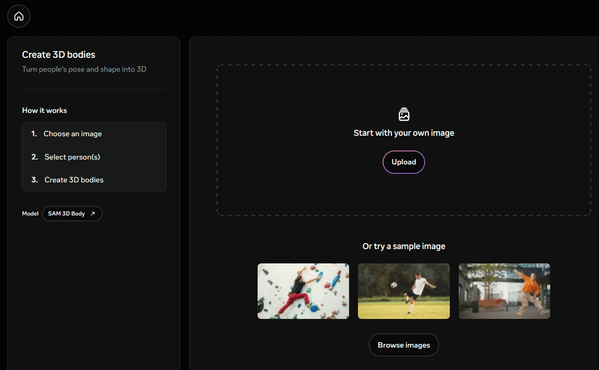 SAM 3D Bodyは以下のデモサイトで実際に使うことができます。