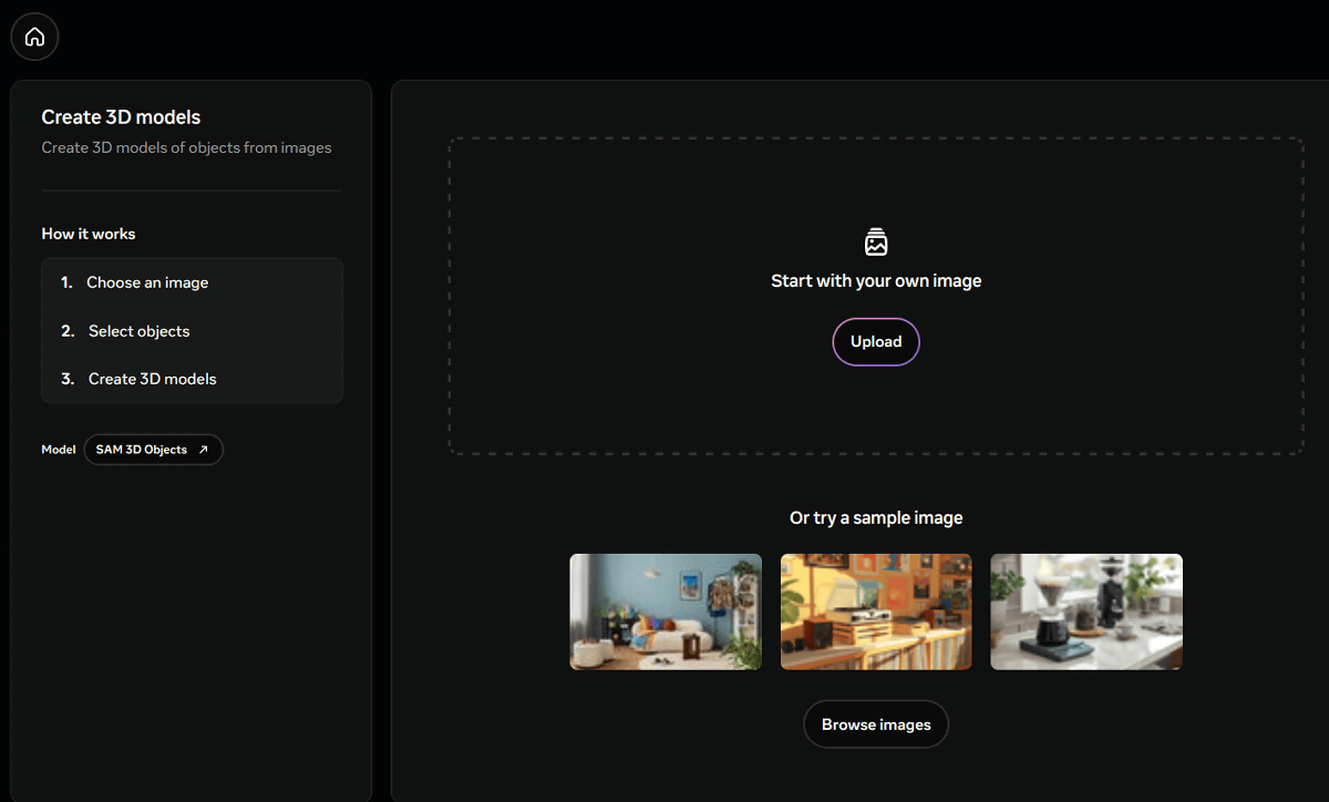 SAM 3D Objectsもデモサイトで使えるようになっています。