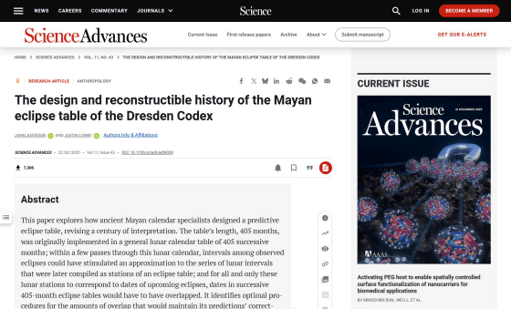 中央アメリカに紀元前から16世紀にかけて存在していたマヤ文明は、高度に発達した数学や天文学を持っており、日食や月食を予測していたこともわかっています。そんなマヤ文明の人々が「日食を予測する表」をどのように運用していたのかについて、新たな研究結果が学術誌のScience Advancesに発表されました。