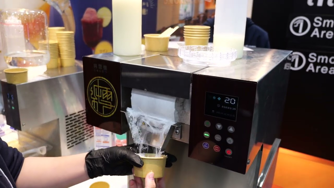 ジュースもビールも瞬間冷凍してかき氷にできるマシン「純雪機」 - YouTube