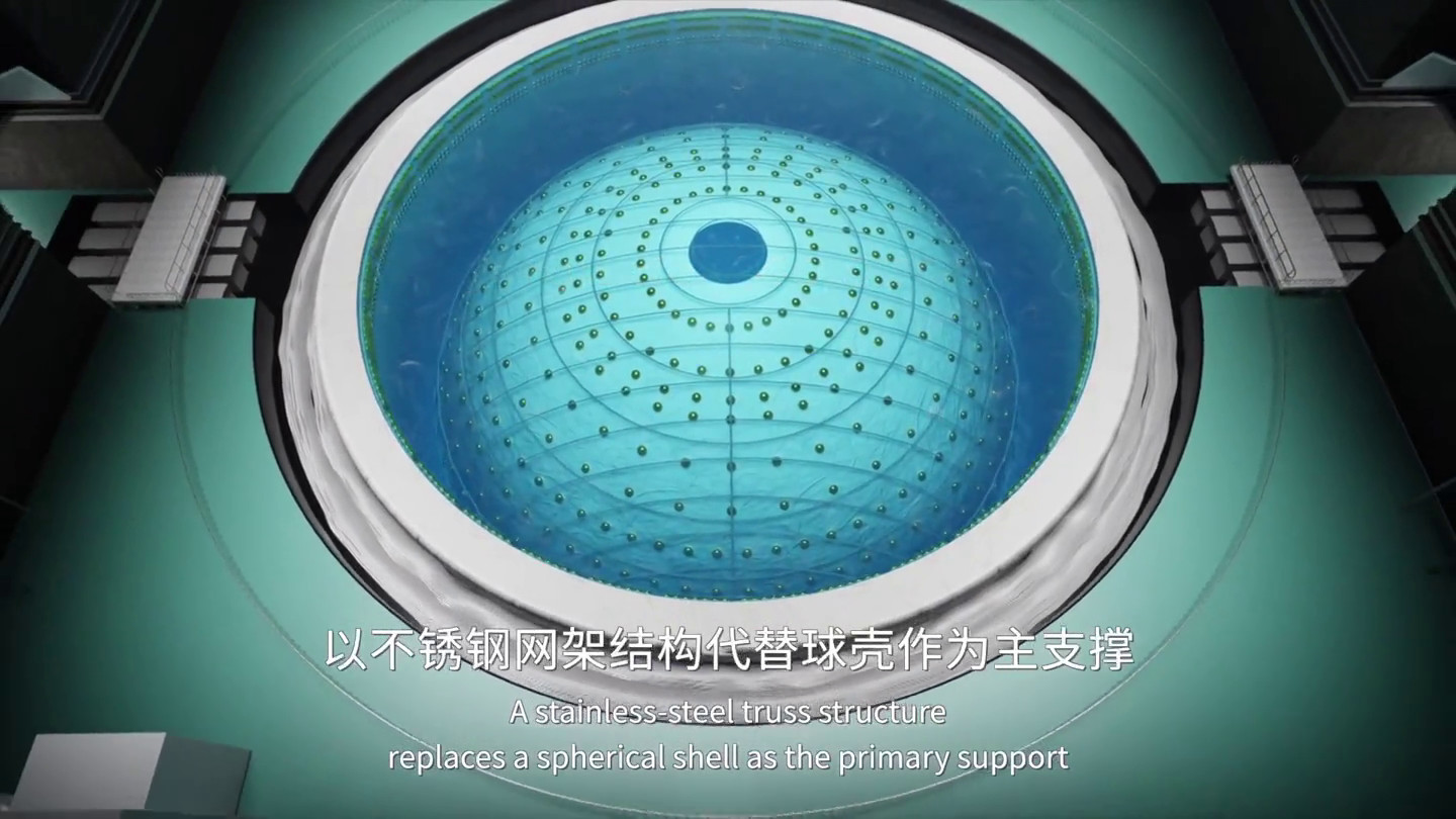 さらに、検出器全体は直径43.5メートル、深さ44メートルの円筒形プールの中に沈められており、外部からの放射線ノイズを遮断するために超純水で満たされています。
