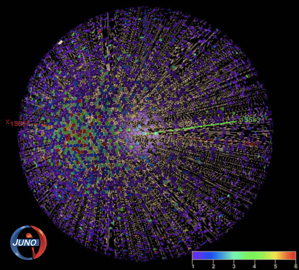 また、JUNOでは宇宙線ミューオンによるバックグラウンドノイズを除去するために、水チェレンコフ検出器やトップトラッカーと呼ばれる装置も併用されており、極めて純度の高いデータ取得が可能となっています。
