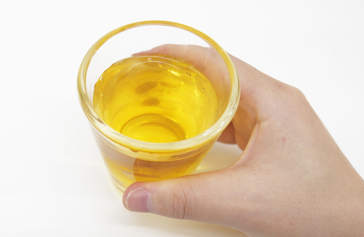 コップに注いでみました。フタを開けた瞬間から、りんごの芳潤な香りが漂ってきます。