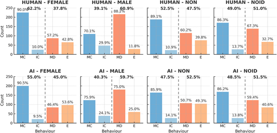 これまでも「囚人のジレンマ」を用いた研究は行われていますが、相手の性別に着目した研究は数が少なく、その数少ない研究で男女共に相手が女性のときの協力度が高く(「黙秘」を選ぶ傾向がある)、また、女性プレイヤーは男性よりも協力度が高いことが示されています。このため、研究チームは「AIの性別が、人々の協力意欲に与える影響は検討を要する多面的な課題」だと考えたとのこと。