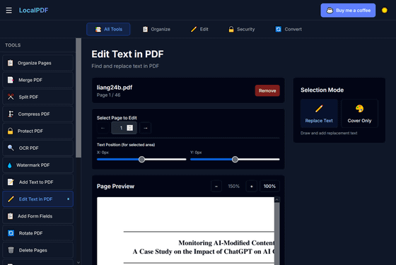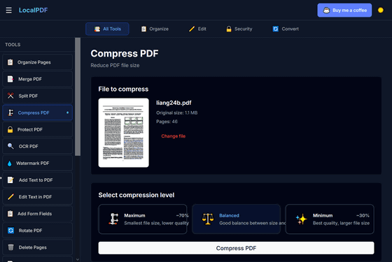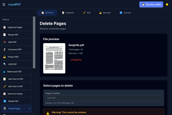 無料&アカウント登録なし&ブラウザ上で完全に動作するプライバシー重視のPDFエディター「LocalPDF」