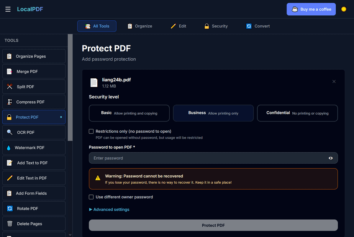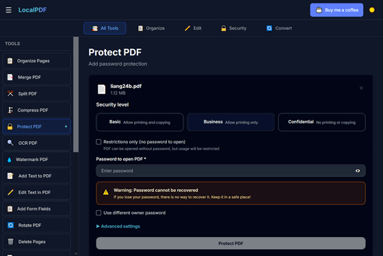 Protect PDF:パスワードを追加してセキュリティを強化