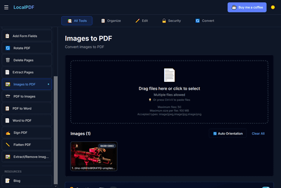 Images to PDF:画像ファイルをPDFファイルに変換