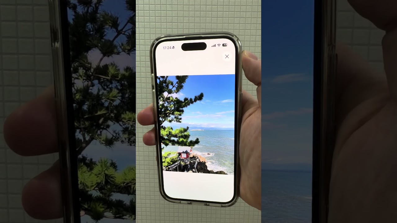 すると画像の処理が始まり、ほんの数秒で空間シーンが生成されました。iPhone本体を傾けると写真が立体的に動きます。画像に写っていなかった「枝葉の裏側の空」などが新たに描写されているのが特徴的です。