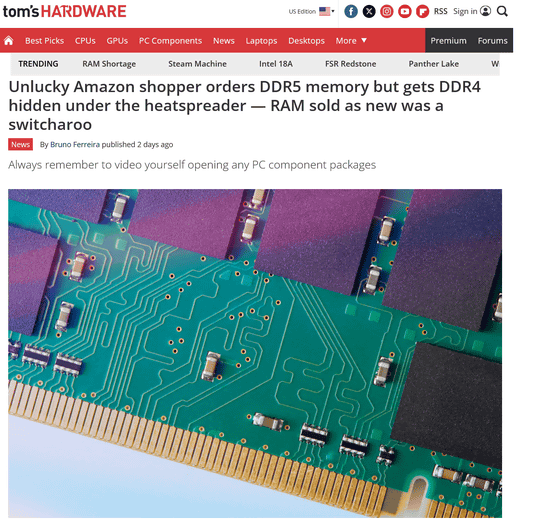Unlucky Amazon shopper orders DDR5 memory but gets DDR4 hidden under the heatspreader — RAM sold as new was a switcharoo | Tom's Hardware