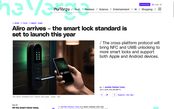 Apple、Google、Samsung、Qualcommなどの協力を得て2023年に始動したAliroは、2025年に最終検証段階を通過し、2026年第1四半期に市場へ投入されることが決まりました。