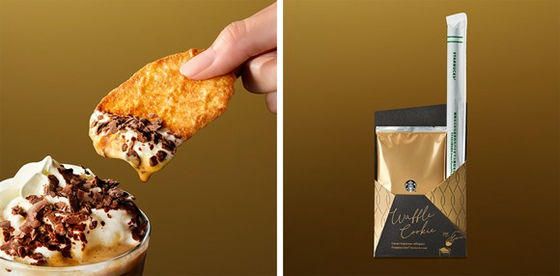 別添えのワッフルクッキーをホイップクリームとカカオシェイブにディップして楽しむこともできます。