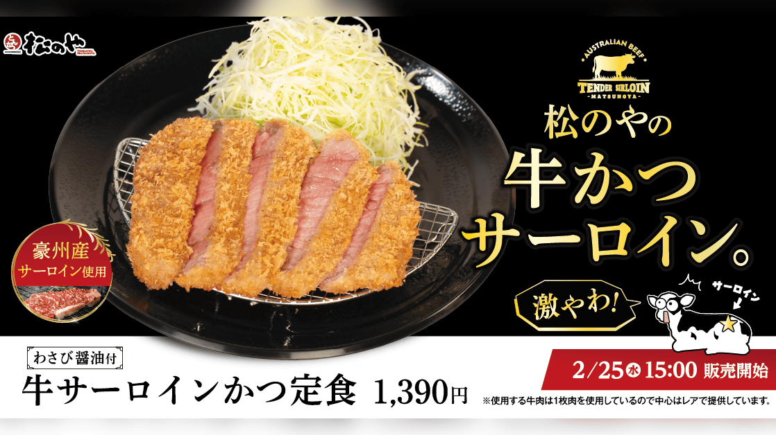 豪州産のサーロインを使用「牛サーロインかつ定食」発売|松のや|松屋フーズ