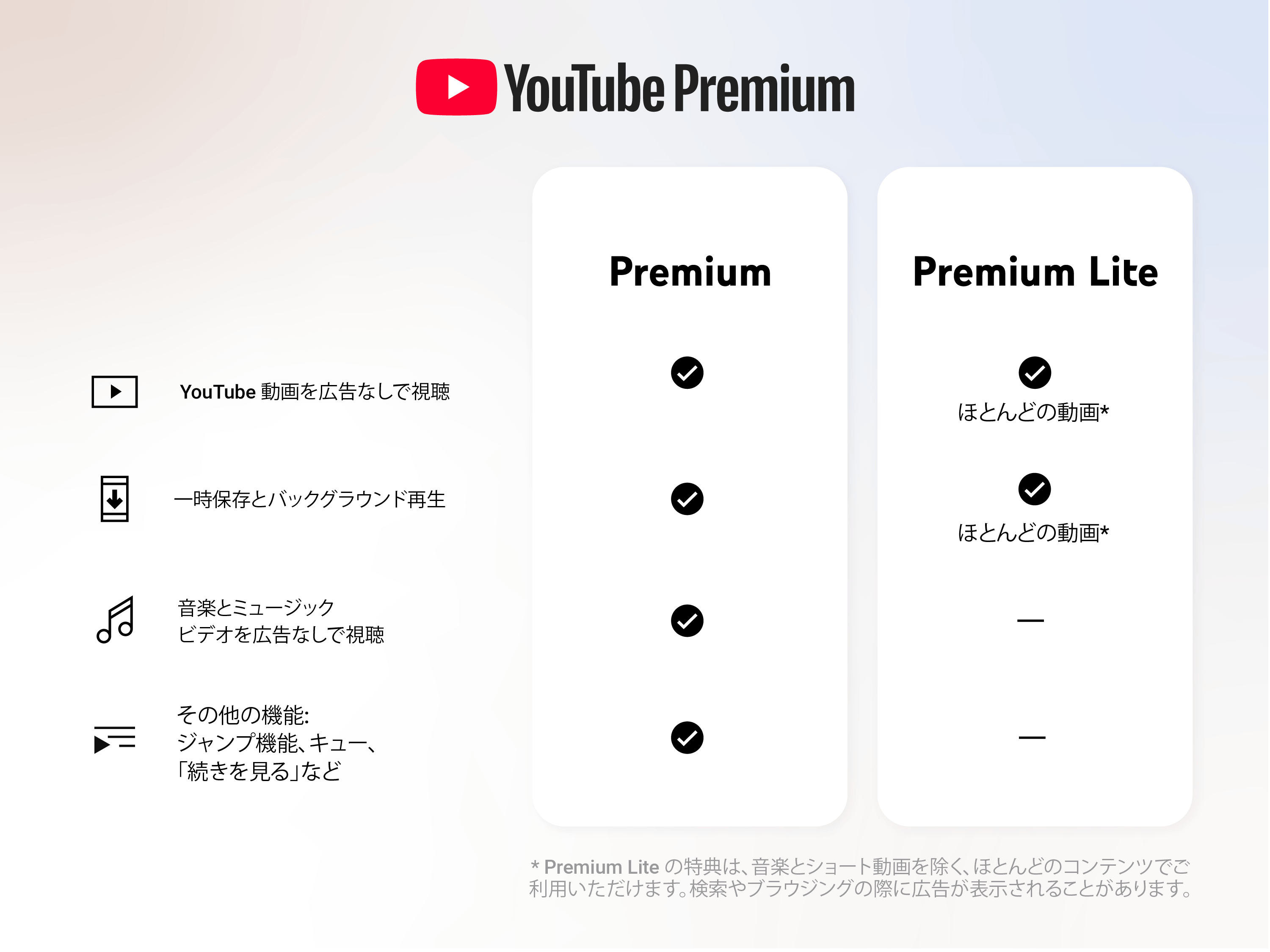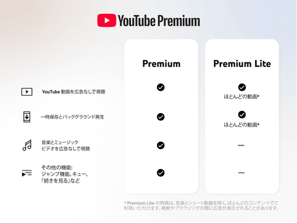 YouTubeが広告表示を制限する月額780円のサブスクリプションプラン「YouTube Premium Lite」に、新たにバックグラウンド再生と一時保存機能を追加したと発表しました。